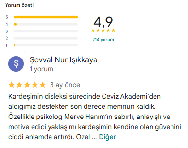 Çocuklarımız, huzur, güven ve konforun ön planda tutulduğu ayrıcalıklı eğitim süreçlerini Ceviz Akademi Özel Eğitim ve Rehabilitasyon Merkezi bünyesinde deneyimler. Bilişsel ve sosyal gelişimi destekleyen programlarımız sayesinde çocuklar; iletişim kurma, kendini ifade etme ve sosyal ortamlarda aktif yer alma becerileri kazanırken, tüm eğitimler son teknoloji ile donatılmış modern ortamlarda gerçekleştirilir.